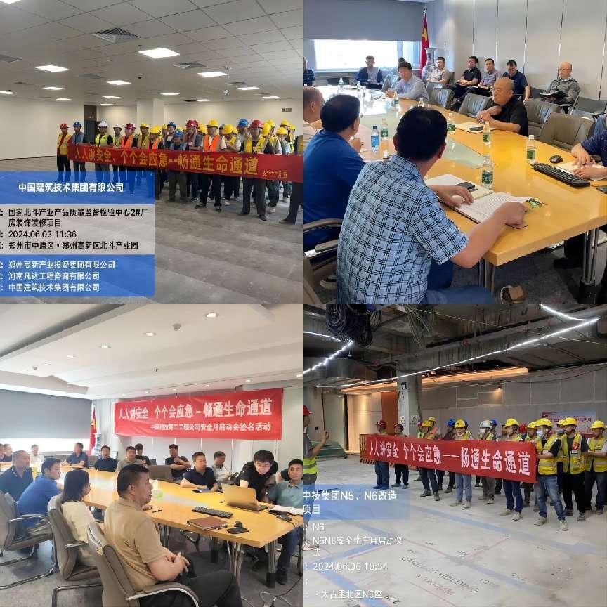 安全月期間,中國(guó)建技領(lǐng)導(dǎo)多次開(kāi)展領(lǐng)導(dǎo)帶班檢查工作。中國(guó)建技安全生產(chǎn)監(jiān)督管理部以安全文明施工、消防管理、汛期管理為重點(diǎn),開(kāi)展安全文明施工專(zhuān)項(xiàng)檢查工作。同時(shí)分支機(jī)構(gòu)對(duì)所屬在施項(xiàng)目進(jìn)行全面檢查,重點(diǎn)檢查危大、超危大工程以及重復(fù)出現(xiàn)的隱患,制定專(zhuān)項(xiàng)整改措施,重點(diǎn)落實(shí)。各在施項(xiàng)目以“暢通生命通道”為主題,開(kāi)展隱患排查治理。