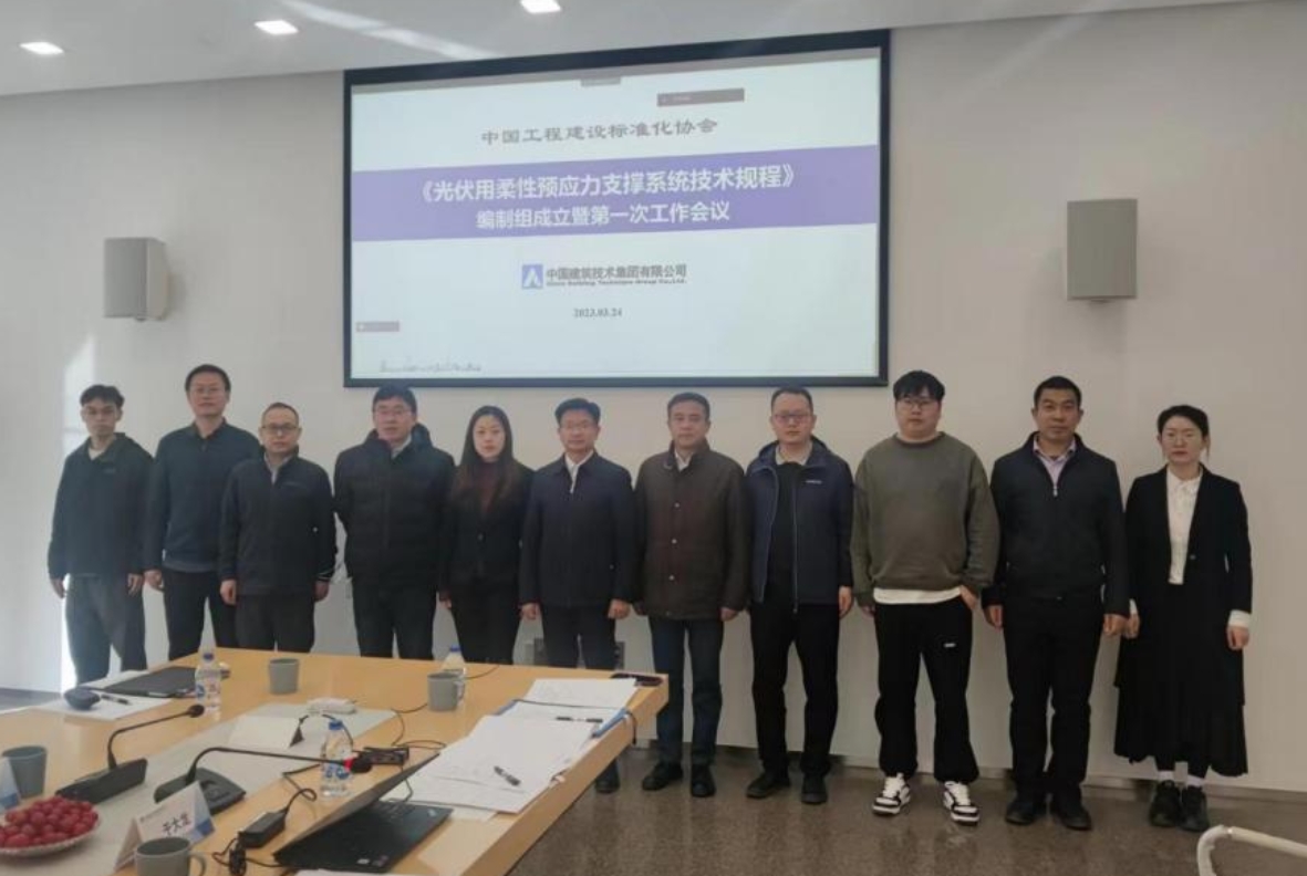 3月24日,由集團(tuán)公司和中鐵上海設(shè)計(jì)院集團(tuán)有限公司共同主編的《光伏用柔性預(yù)應(yīng)力支撐系統(tǒng)技術(shù)規(guī)程》(以下簡稱《規(guī)程》)編制組成立暨第一次工作會議在京召開。