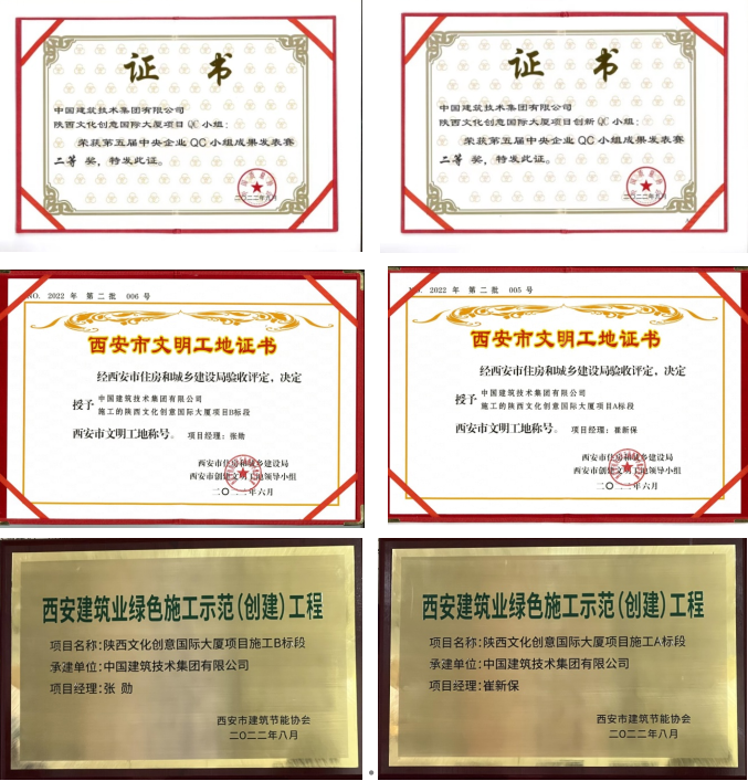 此前,陜西文化創(chuàng)意國際大廈項(xiàng)目QC小組曾在第四屆中央企業(yè)QC小組成果發(fā)表賽中榮獲三等獎。兩年間,小組成員共計(jì)完成4項(xiàng)課題,并在西安市發(fā)表賽中斬獲一等獎3項(xiàng)、二等獎1項(xiàng)。在QC小組驅(qū)動下,文創(chuàng)項(xiàng)目也積極評優(yōu),相繼榮獲“西安市文明工地”“西安建筑業(yè)綠色施工示范工程”等多項(xiàng)獎項(xiàng)。