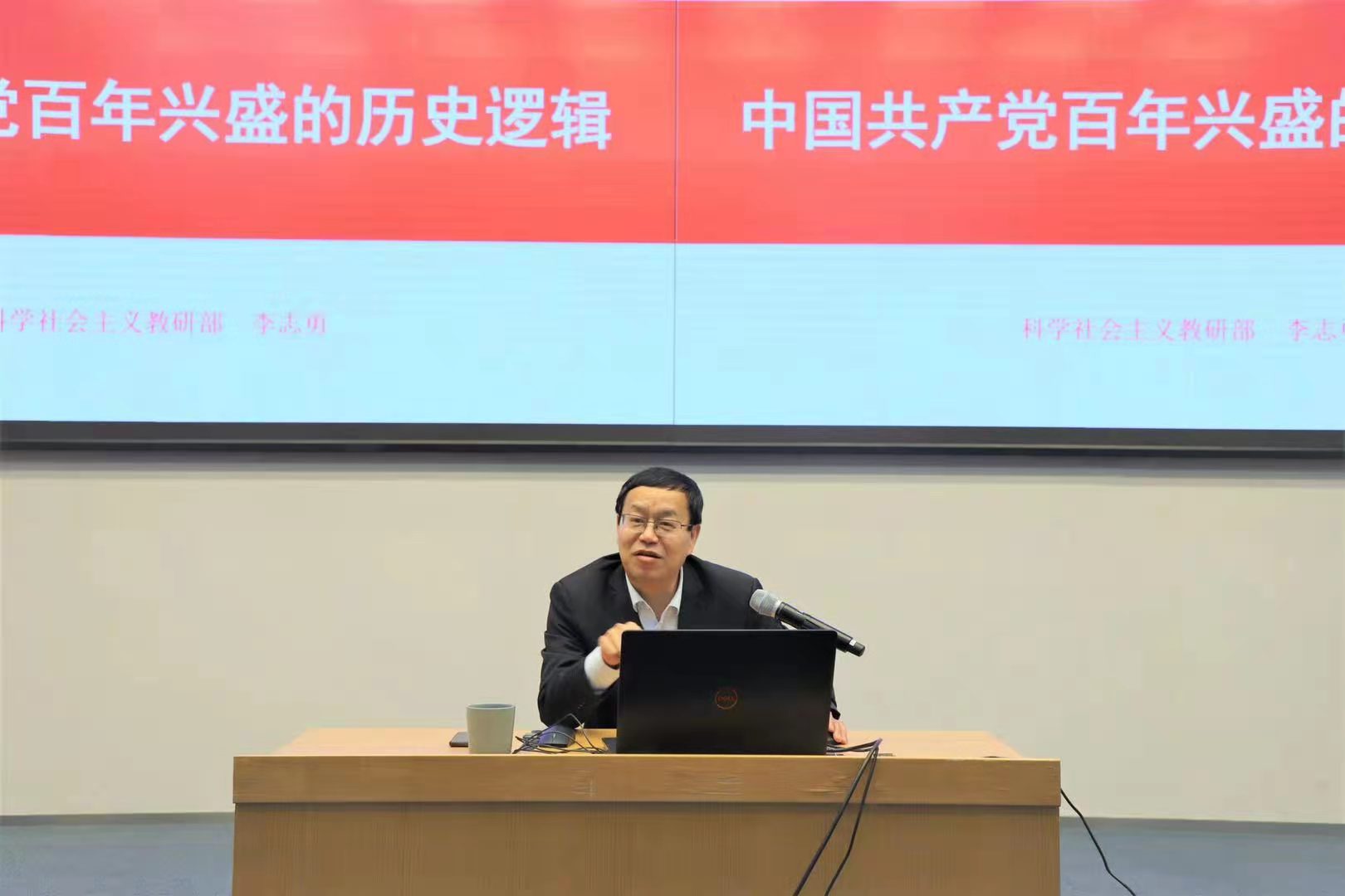 李志勇教授從初心使命、光輝歷程、偉大成就和歷史經(jīng)驗四個方面引導大家一同回顧了中國共產(chǎn)黨成立以來的崢嶸歲月。在對歷史經(jīng)驗的講授中,李教授分別從思想一變天地寬、勇立潮頭敢為先、得民心者得天下、自我革命御風險、紅色基因不能變和團結統(tǒng)一鑄輝煌六個方面,闡明了中國共產(chǎn)黨能夠帶領中國人民從站起來、富起來到強起來的深刻原因,充分論證了中國特色社會主義制度的優(yōu)越性和道路的必然性。