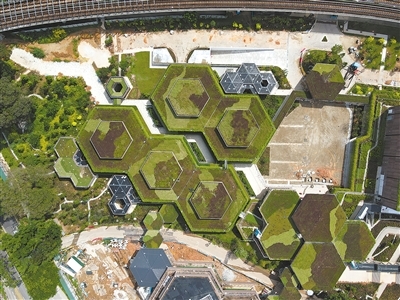 近年來,新加坡注重應(yīng)對(duì)氣候變化,不斷提高建筑的環(huán)境可持續(xù)標(biāo)準(zhǔn),對(duì)綠色建筑標(biāo)志認(rèn)證設(shè)置了最高等級(jí)——綠色標(biāo)志白金獎(jiǎng)。三巴旺綜合社區(qū)中心項(xiàng)目以取得綠色標(biāo)志白金獎(jiǎng)為目標(biāo),將綠色環(huán)保理念貫穿于項(xiàng)目設(shè)計(jì)和施工的各個(gè)環(huán)節(jié)。中心的建筑屋頂實(shí)現(xiàn)了無土植物全覆蓋,在新加坡常年炎熱的氣候下,這種設(shè)計(jì)不僅外觀上綠意盎然,還可以起到降溫、吸音、降噪等作用;園林區(qū)域的降雨排水系統(tǒng)運(yùn)用石塊、碎石、植物等天然材料,將雨水匯集起來并層層過濾沉降泥沙,營(yíng)造出天然河道景象,既美觀又能凈化水源;項(xiàng)目還采用了大量預(yù)制構(gòu)件,雖然對(duì)施工精度提出了很高的要求,但可以最大程度減少施工中產(chǎn)生的建筑垃圾。