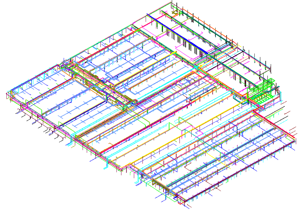 BIM技術(shù):在項目施工前,利用BIM技術(shù)提前對廠房的各系統(tǒng)路由進(jìn)行了優(yōu)化、排布,這樣不僅在工期上節(jié)約了時間,在經(jīng)濟(jì)方面更起到了降本增效的良好作用。通過BIM技術(shù)應(yīng)用,施工人員結(jié)合BIM模型查看圖紙,能夠更形象地理解圖紙設(shè)計意圖,也能及時發(fā)現(xiàn)設(shè)計圖紙中存在的問題,避免在施工過程中出現(xiàn)返工現(xiàn)象,有效提升了項目履約水平。永臨結(jié)合技術(shù):項目臨電、照明采用永臨結(jié)合技術(shù),通過將廠房臨電系統(tǒng)與照明系統(tǒng)結(jié)合安裝,避免了傳統(tǒng)照明系統(tǒng)需要再次布線的問題,減少了施工時間和成本,可以避免臨時照明器材的頻繁更換和維護(hù),節(jié)約人力成本和材料成本,從而實現(xiàn)臨電永久化和照明效果的提升。機(jī)電消聲減振綜合施工技術(shù):項目通過采用機(jī)電消聲減震綜合施工技術(shù),有效地降低機(jī)電設(shè)備的噪聲和振動,提高設(shè)備的使用效率和安全性。在機(jī)電設(shè)備的安裝和維護(hù)過程中,綜合運(yùn)用消聲技術(shù)、減震技術(shù)和綜合施工技術(shù)來降低噪聲和振動。