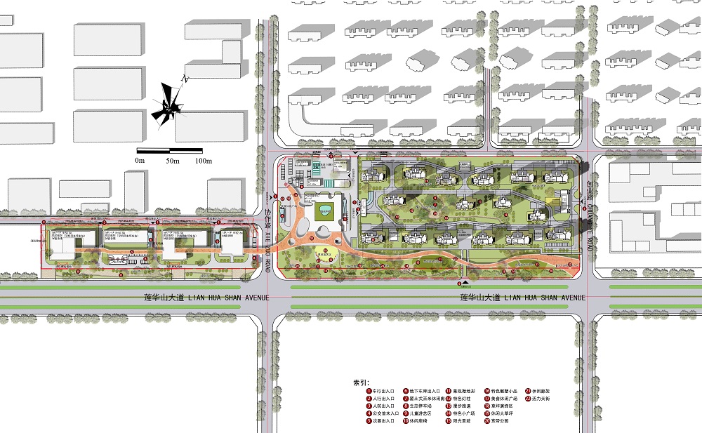 通過調(diào)研分析,提出【都市綠洲、活力天街、靈動空間】三個設(shè)計理念,著力打造五大特色場景:
