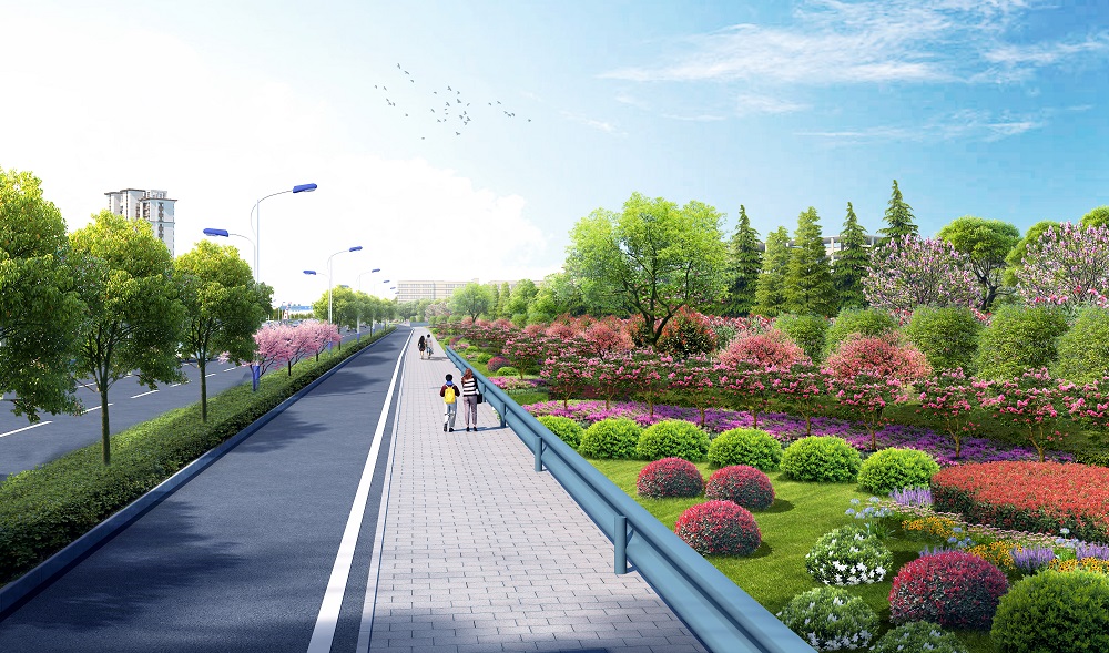 一期建設(shè)面積 80054 ㎡(范圍包含振興大道(S249-105 段)51408 ㎡,通站路街角公園沿街綠化 11646 ㎡,G105 沿街綠化 17000 ㎡)以綠化提升為主。