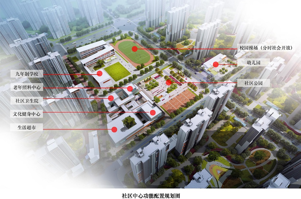 將生活超市、文化娛樂、全民健身、社區(qū)醫(yī)療、老年照料、九年制學(xué)校、社區(qū)公園、幼兒園和管理服務(wù)等社區(qū)類級的公共設(shè)施相對集中或鄰近布局,實現(xiàn)了便利化使用和規(guī)?;?jīng)營的雙重目標。規(guī)劃同時兼顧設(shè)施抗擾和共享平衡的問題:醫(yī)療、養(yǎng)老相互結(jié)合,教學(xué)設(shè)施相對獨立,學(xué)校操場臨近社區(qū)公園和文體中心布置,方便對外開放和聯(lián)動使用。
