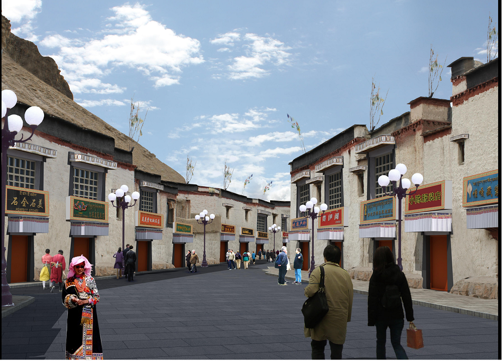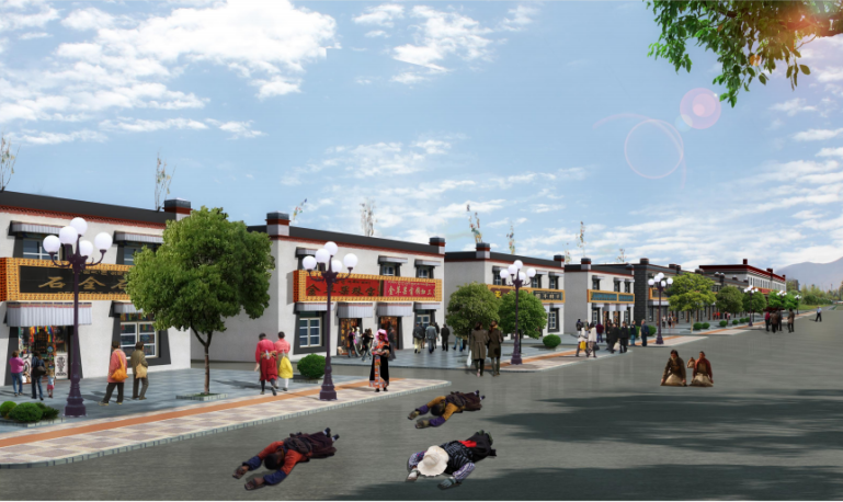 更新:對于規(guī)劃地塊內的沿街建筑,質量較好的,但風貌較為普通的現(xiàn)狀建筑,規(guī)劃予以更新。主要表現(xiàn)為外立面的重新裝飾,融入藏式風格,以及新功能的植入。重建:對于規(guī)劃用地范圍內的質量較差的建筑、危房、以及影響風貌但難以處理的建筑,規(guī)劃予以拆除并重新建設。新建:位于江孜南部的地區(qū)處于未開發(fā)狀態(tài),規(guī)劃將其作為城市新區(qū)建設用地,并融入新藏式風格。